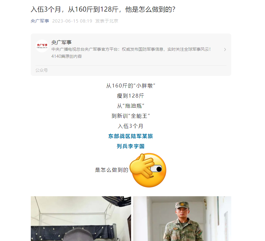 【央广军事】入伍3个月,从160斤到128斤,他是怎么做到的?