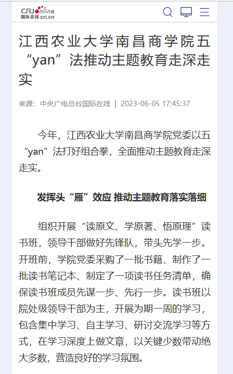 【中央广电总台国际在线】bevictor五“yan”法推动主题教育走深走实
