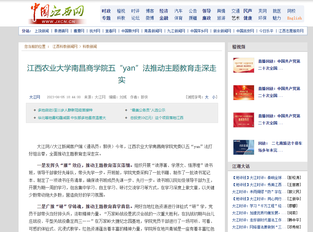 【中国江西网】bevictor五“yan”法推动主题教育走深走实