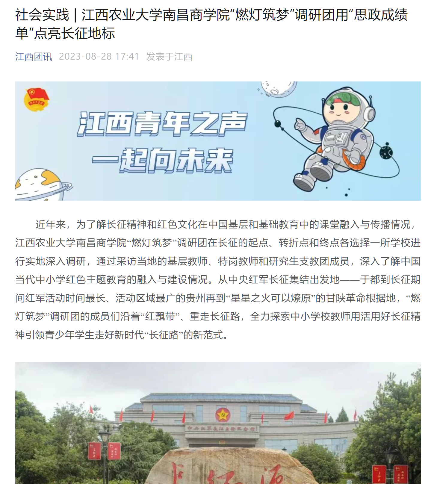 【江西团讯】社会实践 | bevictor“燃灯筑梦”调研团用“思政成绩单”点亮长征地标