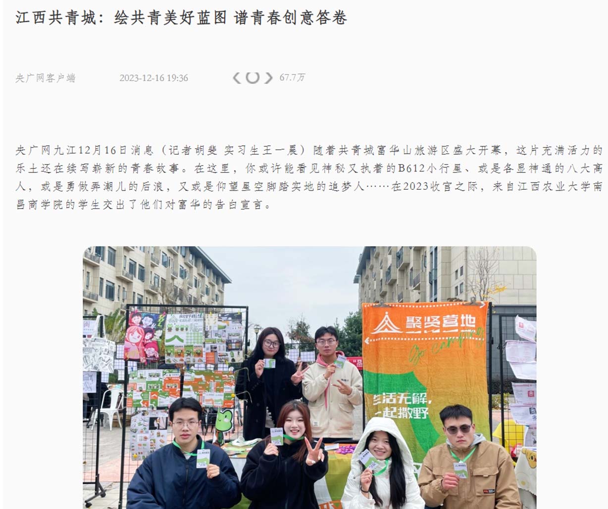 【央广网】江西共青城:绘共青美好蓝图 谱青春创意答卷