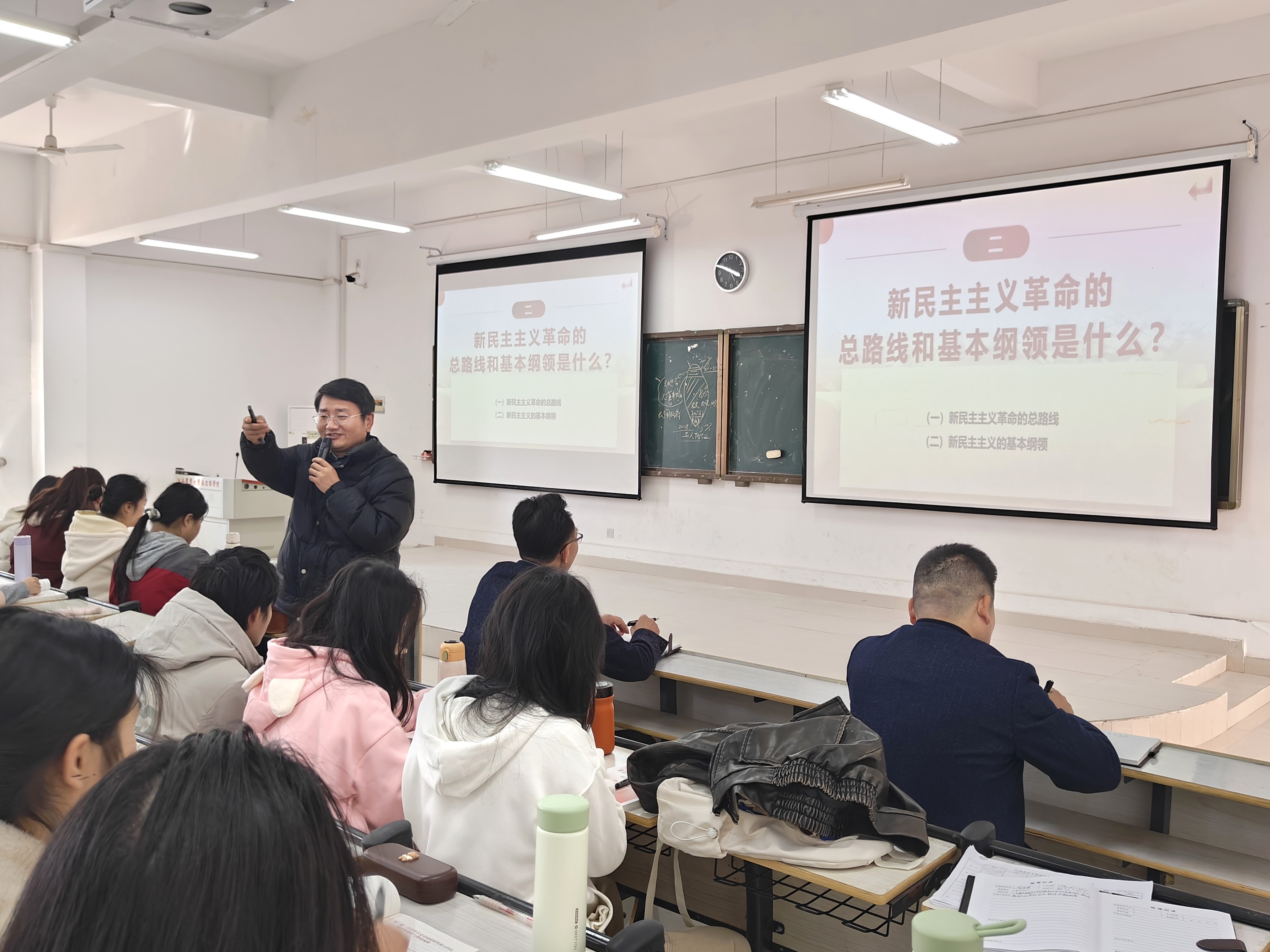 听课过程中,院领导认真聆听授课内容,详细记录课堂教学情况,并对教师的教学方式、课堂互动情况及员工的学习状态进行观察与分析。授课教师周光玲结合生动的案例和丰富的史实,深入讲解了“新民主主义革命的总路线和基本纲领”。教师熊迪在讲解“辛亥革命的爆发”这一专题时,系统阐述了这一历史时期的发展脉络,使员工在历史回顾与理论学习中深化爱党、爱国、爱人民的情怀。两门思政课的课堂氛围活跃,员工积极思考、踊跃发言,展现出良好的学习态度。