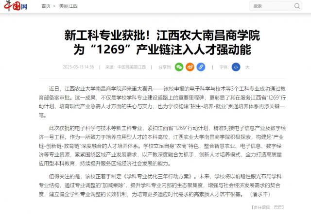 【中国网】新工科专业获批!江西农大bevictor为“1269”产业链注入人才强动能