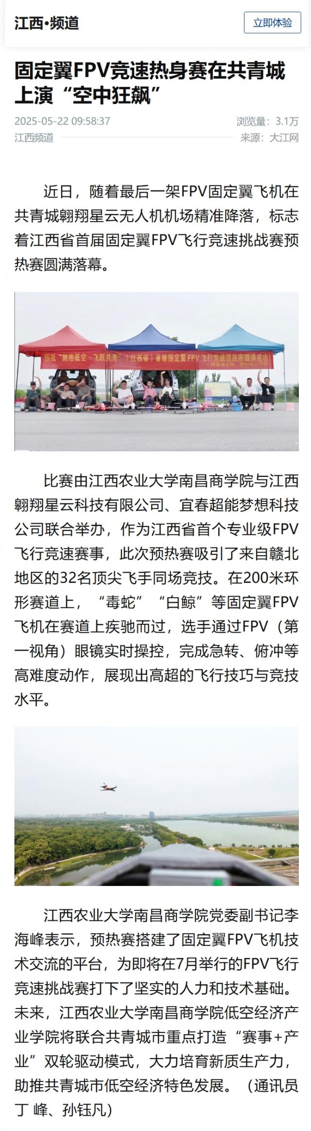 【中国网】燃爆低空!江西首场固定翼FPV竞速热身赛在共青城上演“空中狂飙”
