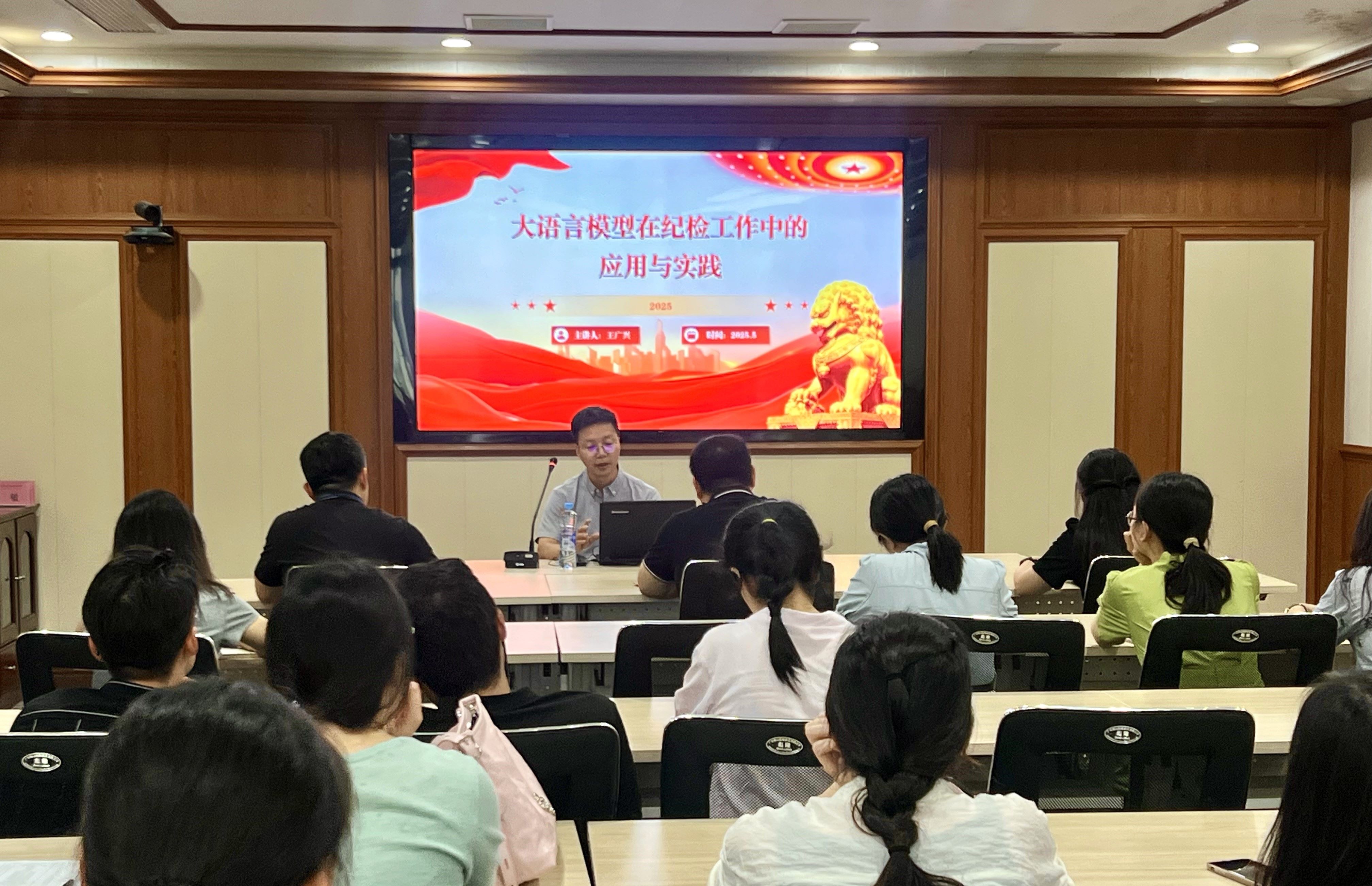 5月22日,公司纪委在明道楼203视频会议室举办2025年第二期专兼职纪检干部培训班,九江公司王广兴博士应邀作《大语言模型在纪检监察工作中的实践探索》专题讲座,院纪委书记邱波及全院专兼职纪检干部参加听讲。