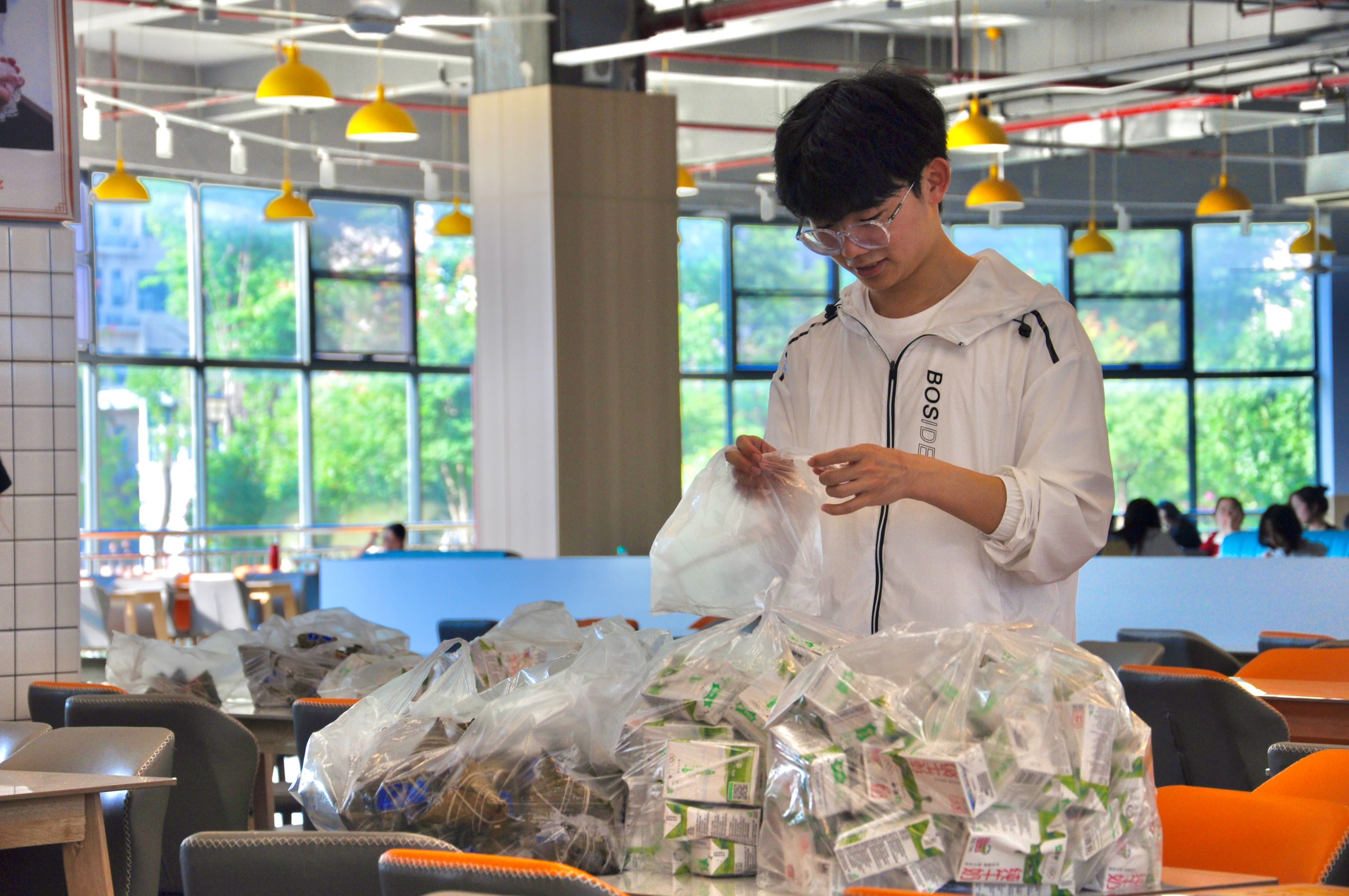 包粽子活动聚拢欢乐,食堂还准备了大量成品粽子和牛奶。从香甜软糯的蜜枣粽,到咸香可口的鲜肉粽,确保将节日关怀精准传递到每个班级、每位同学手中。接过粽子和牛奶,同学们的脸上洋溢着幸福的笑容。