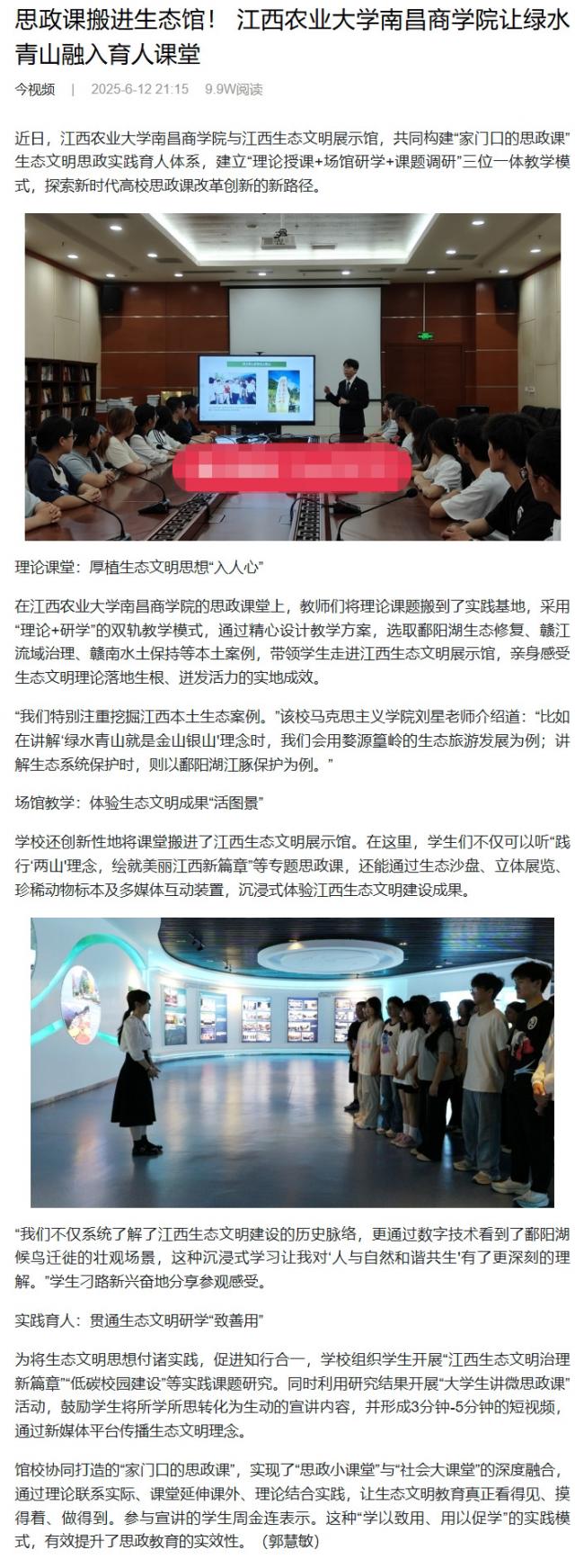 【江西广播电视台】思政课搬进生态馆! bevictor让绿水青山融入育人课堂