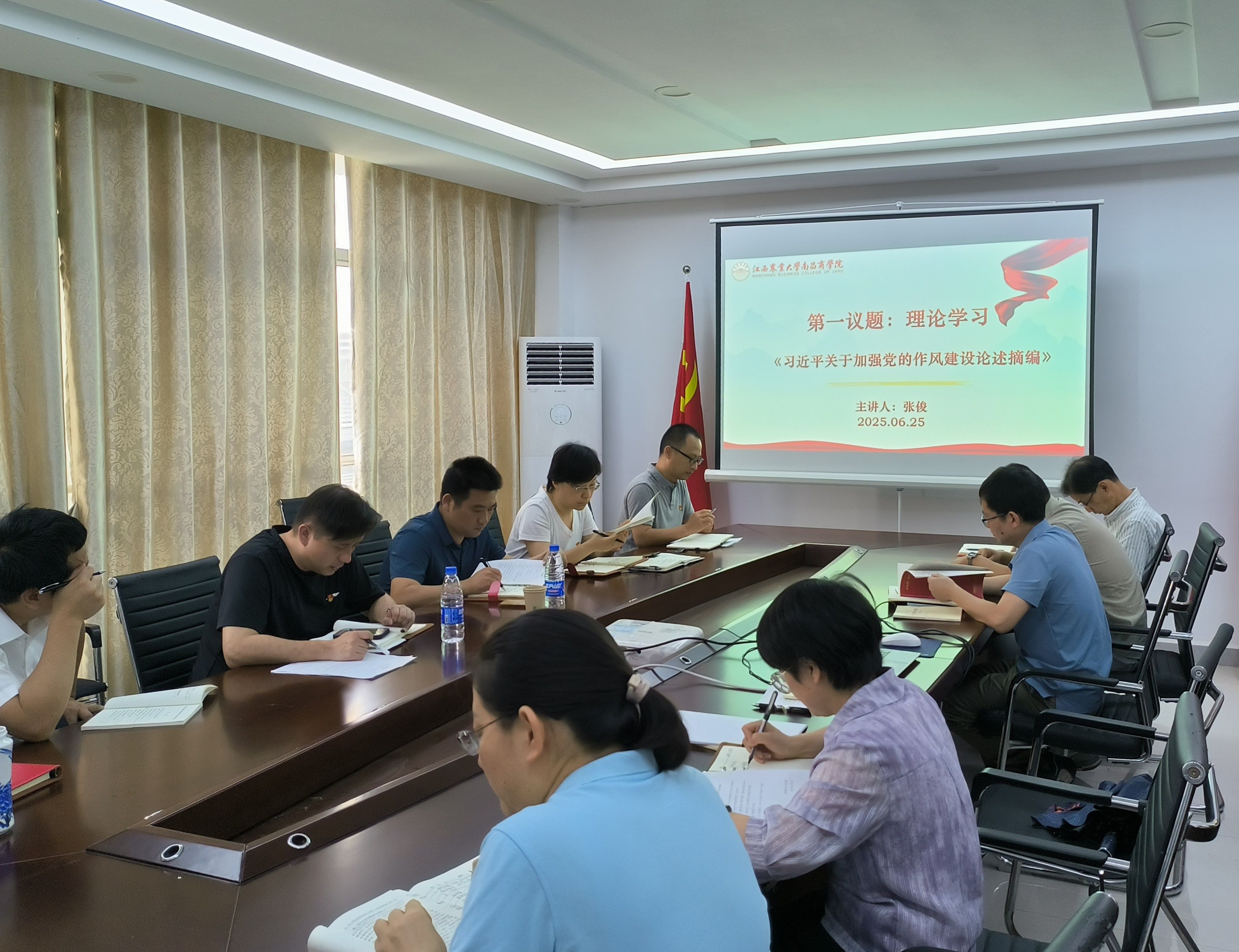 党支部书记张俊领学了《习近平关于加强党的作风建设论述摘编》第四章内容,文中强调中央八项规定精神是改进作风的切入口和动员令,是长期有效的铁规矩、硬杠杠。党支部委员对《党政机关厉行节约反对浪费条例》相关内容进行阐释,从深刻领会新修订《条例》的背景、准确把握新修订《条例》的新变化和全面掌握新修订《条例》的主要内容三个方面进行了系统学习。随后,会议组织开展正风肃纪警示教育专题学习,并对在学习教育过程中查摆的问题进行了专题研讨,对《中国共产党党徽党旗条例》进行了深入学习,对党支部职能部门假期业务工作安排进行了通报和交流。