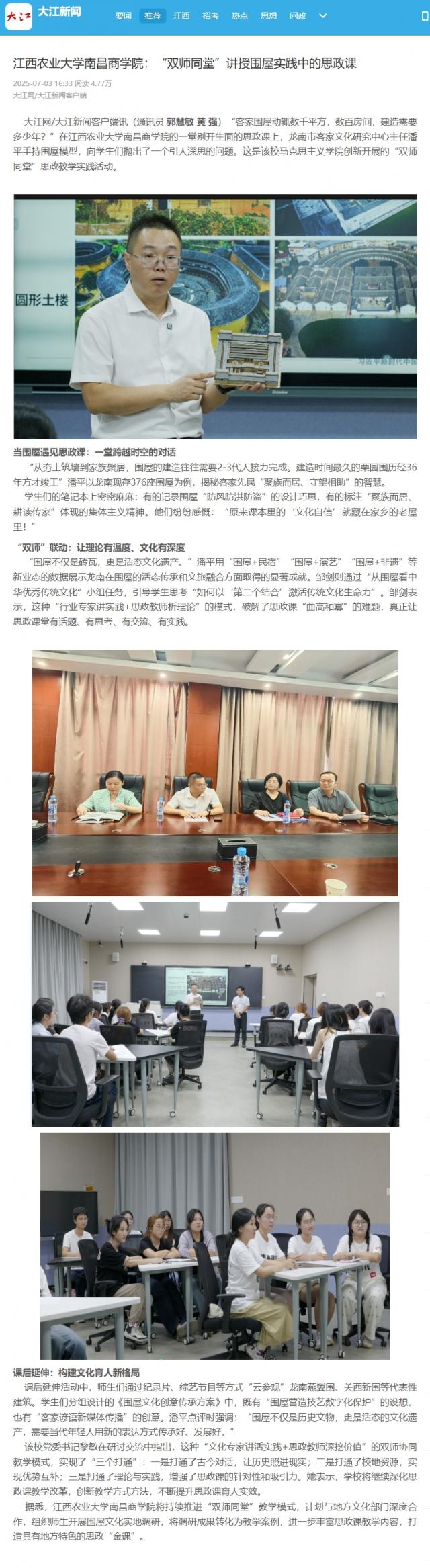 【大江新闻】bevictor:“双师同堂”讲授围屋实践中的思政课