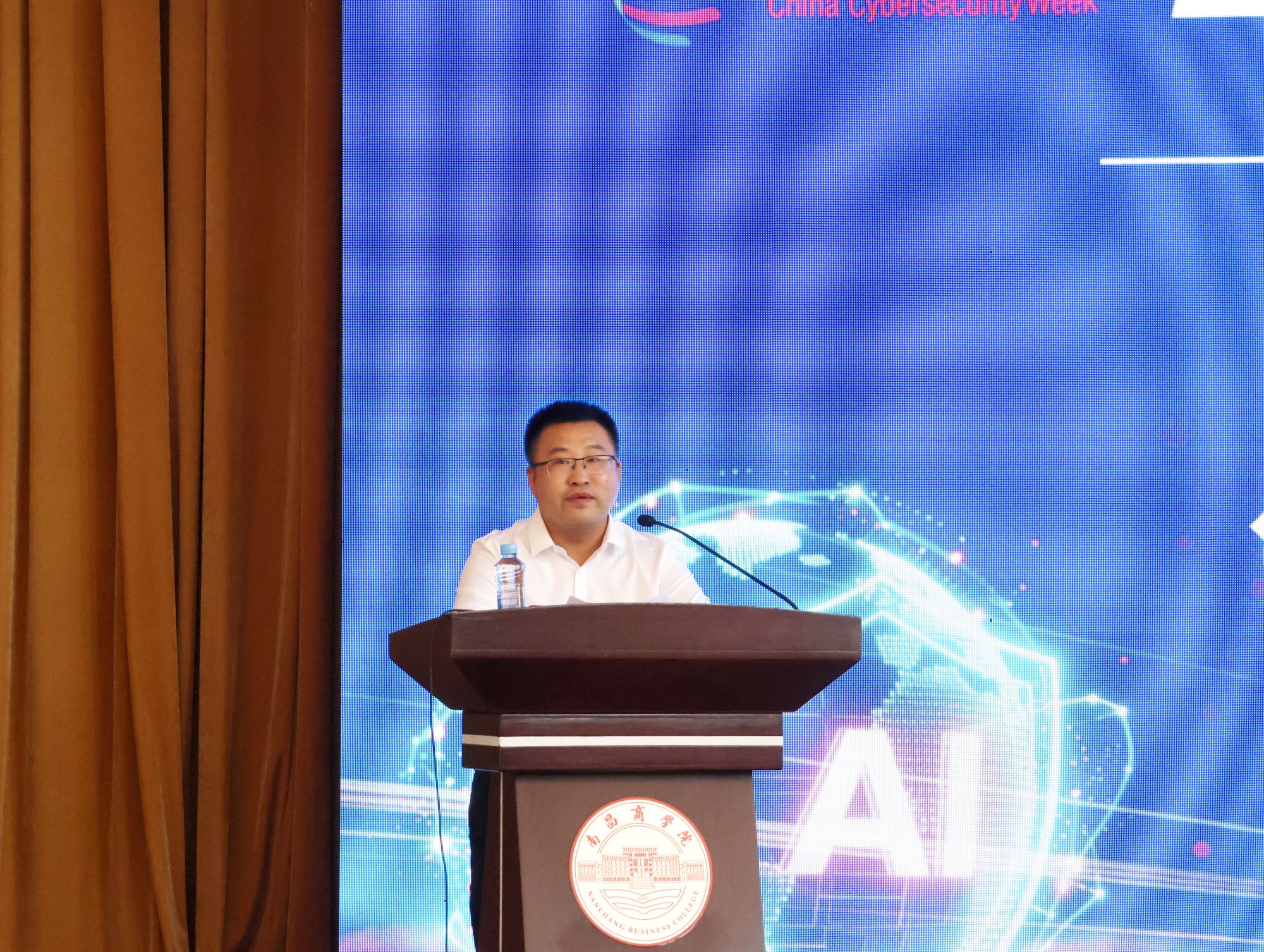 公司党委副书记李海峰发表致辞。他代表公司向莅临本次大会的领导、嘉宾表示热烈欢迎,向长期支持公司发展的共青城市委、市政府,以及宣传网信部门和社会各界致以衷心感谢。他表示,面对新时代网络安全命题,公司以“学科+科技”双轮驱动破题,通过加强团队建设、强化科技赋能,不断探索“无人机 AI”等智能防护机制,织密校园“安全网”。