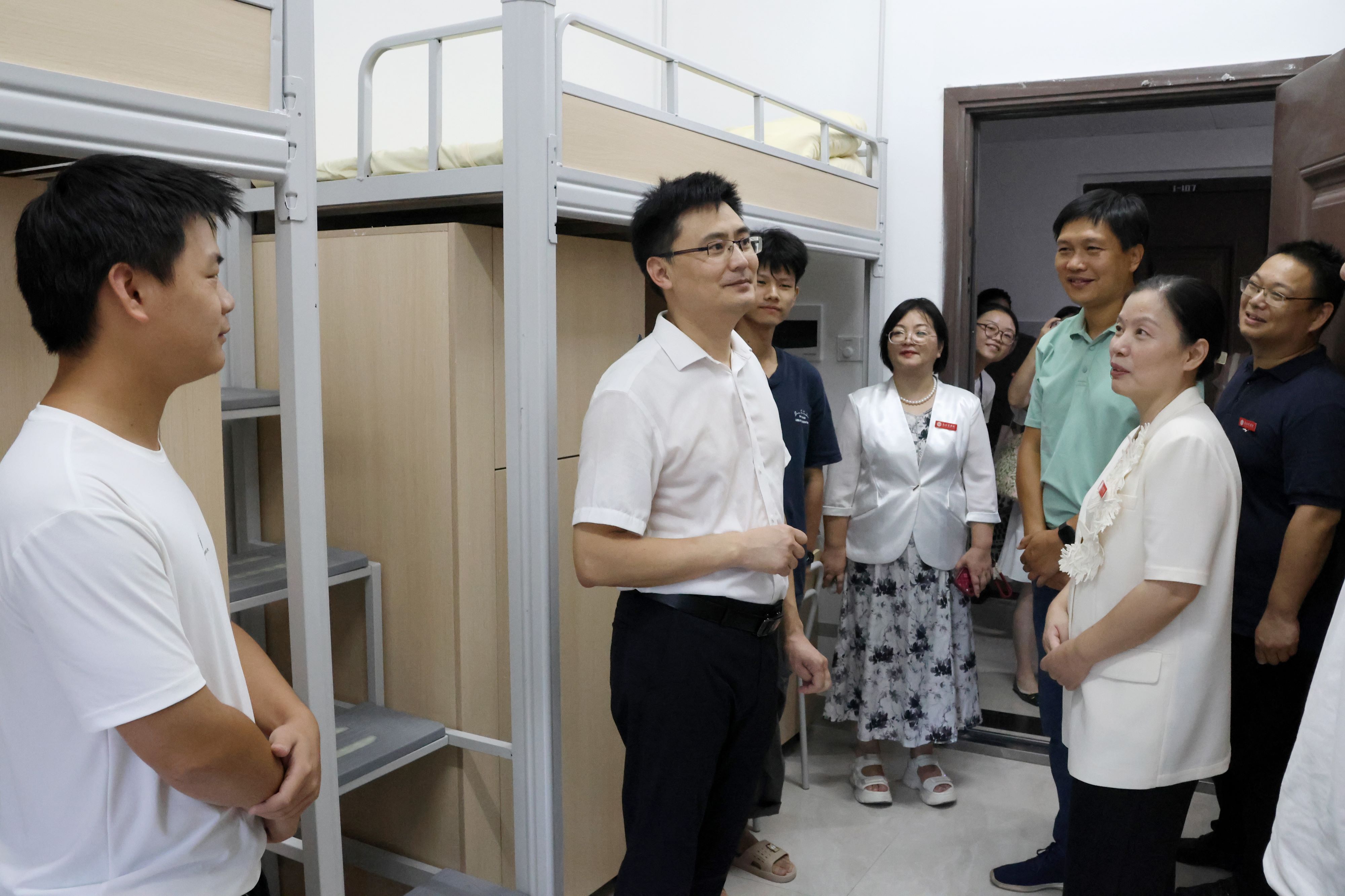 9月16日,伟德体育党委委员、副董事长张高亮来院检查校园安全稳定工作和“一站式”员工社区建设,公司党委书记黎敏等在家院领导及相关单位人员陪同。