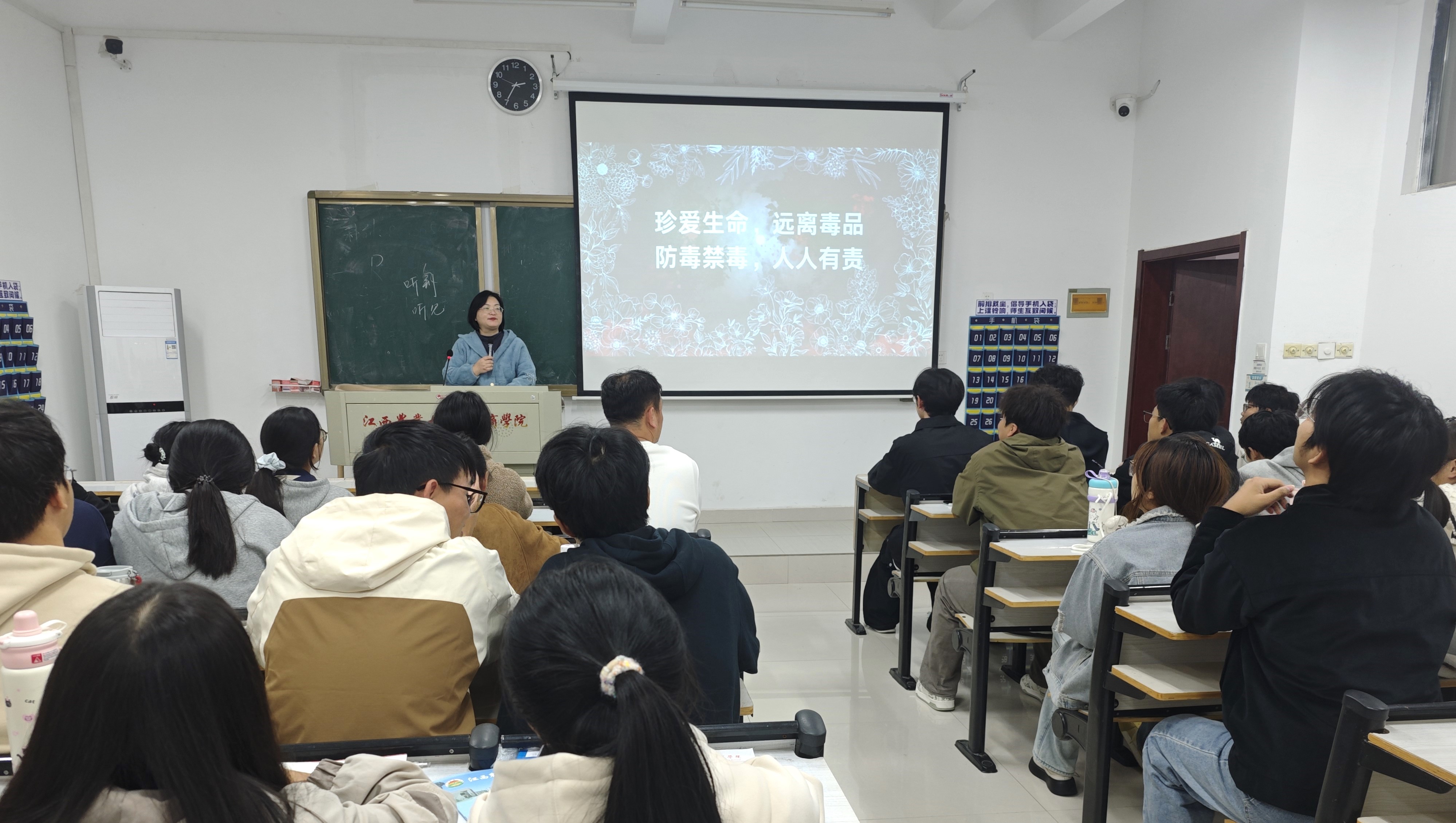 在“禁毒教育”主题班会上,侯英梅介绍了毒品种类、危害及禁毒斗争严峻形势,引导员工深刻认识毒品对个人、家庭、社会的危害。她强调,青年员工正处于“三观”形成关键期,需保持清醒、筑牢思想防线,坚决抵制毒品诱惑,并寄语同学们树立“健康人生、绿色无毒”理念,既要做禁毒知识的接受者,更要做禁毒宣传志愿者,携手营造无毒校园环境。