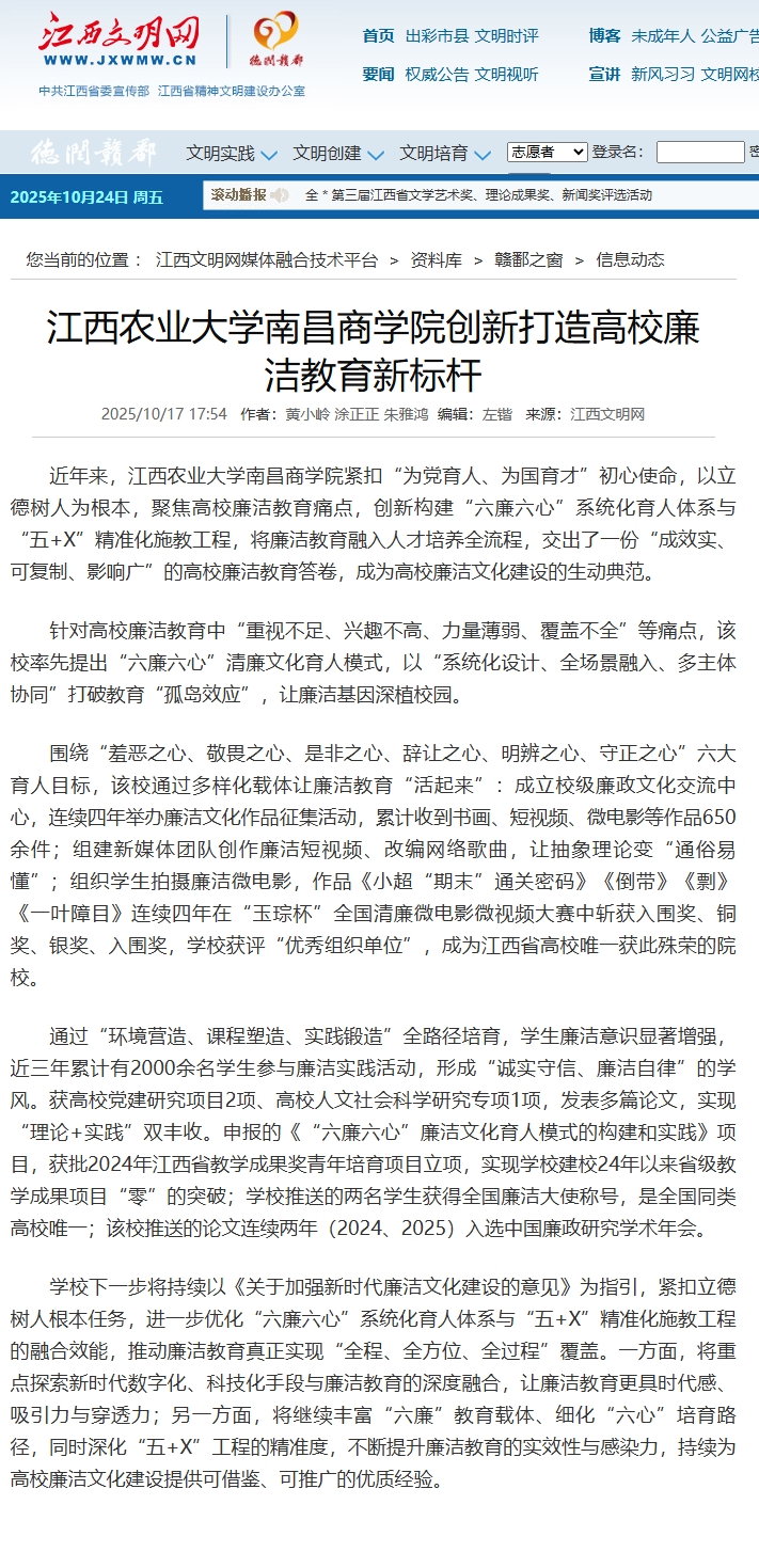 【江西文明网】bevictor创新“六廉六心”“五+X”双模式 打造高校廉洁教育新标杆
