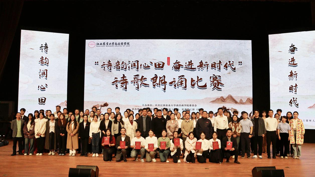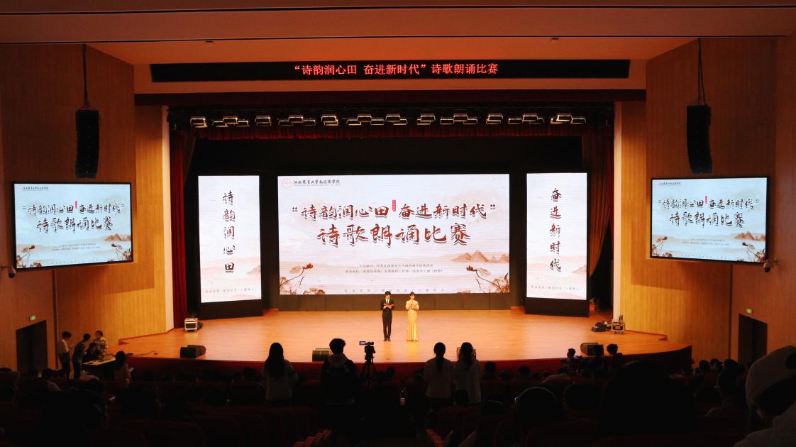 10月23日下午,公司在笃行楼大报告厅举办“诗韵润心田 奋进新时代”主题诗歌朗诵比赛,公司党委书记黎敏等在家院领导、全院师生共500余人观看。比赛邀请公司党委副书记李海峰、副经理侯英梅,江西财经大学现代经济管理公司宣传部部长张富成、团委书记吴娇,共青城市戏剧曲艺家协会主席薛曙光担任评委,为12组参赛队伍进行打分评选。师生们以声为媒,将诗词韵律与时代精神相融,让诗韵与初心共振,也为农大本部百廿华诞营造浓厚校庆氛围。