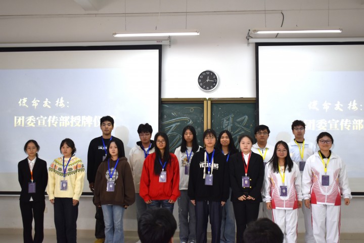 团学事务中心上一任员工会主席杜冲,围绕团学事务中心过往的工作历程,回顾了取得的各项成果,结合自身经历分享了工作中的宝贵经验与心得,为新成员明确了未来的努力方向。员工代表曾慧凡,从自身对团学工作的理解出发,分享了对团学事务中心职责与价值的认知,表达了对未来参与团学工作的热情与期待。随后,会议进入授牌仪式环节,各部门部长手持象征责任与义务的工作牌,依次为部门新干事授予标识,这一刻不仅是身份的认可,更是责任的传递,让新干事们深刻感受到了加入团学事务中心的使命感与归属感。