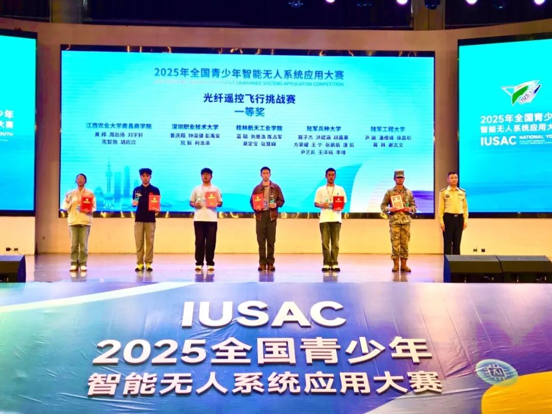 10月18日,2025年全国青少年智能无人系统应用大赛在上海落下帷幕。公司代表队“商院梦之队”在光纤遥控飞行挑战赛项目中,5发全部命中斩获满分100分,冠绝全场,获得全国第一。本次比赛由中央宣传部宣传教育局(全民国防教育局)、教育部体育卫生与艺术教育司、中央军委国防动员部政治工作局指导,中国航空学会、中国兵工学会主办,旨在深入学习贯彻习近平总书记关于加强全民国防教育的重要论述和重要指示批示精神。