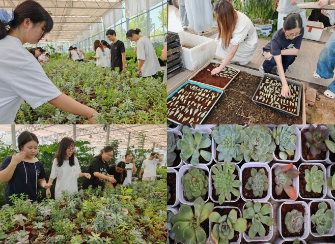 为使花卉之美融入师生的日常,让运动的欢乐与自然的生机相互交融,在10月30日至11月1日公司第十九届田径运动会激烈开展期间,教务处精心策划了“运动逐阳,多肉向光”绿植赠送及多肉科普活动,为全院170余名运动冠军及多肉爱好者赠送了由荷塘景园基地培育的多肉植物。
