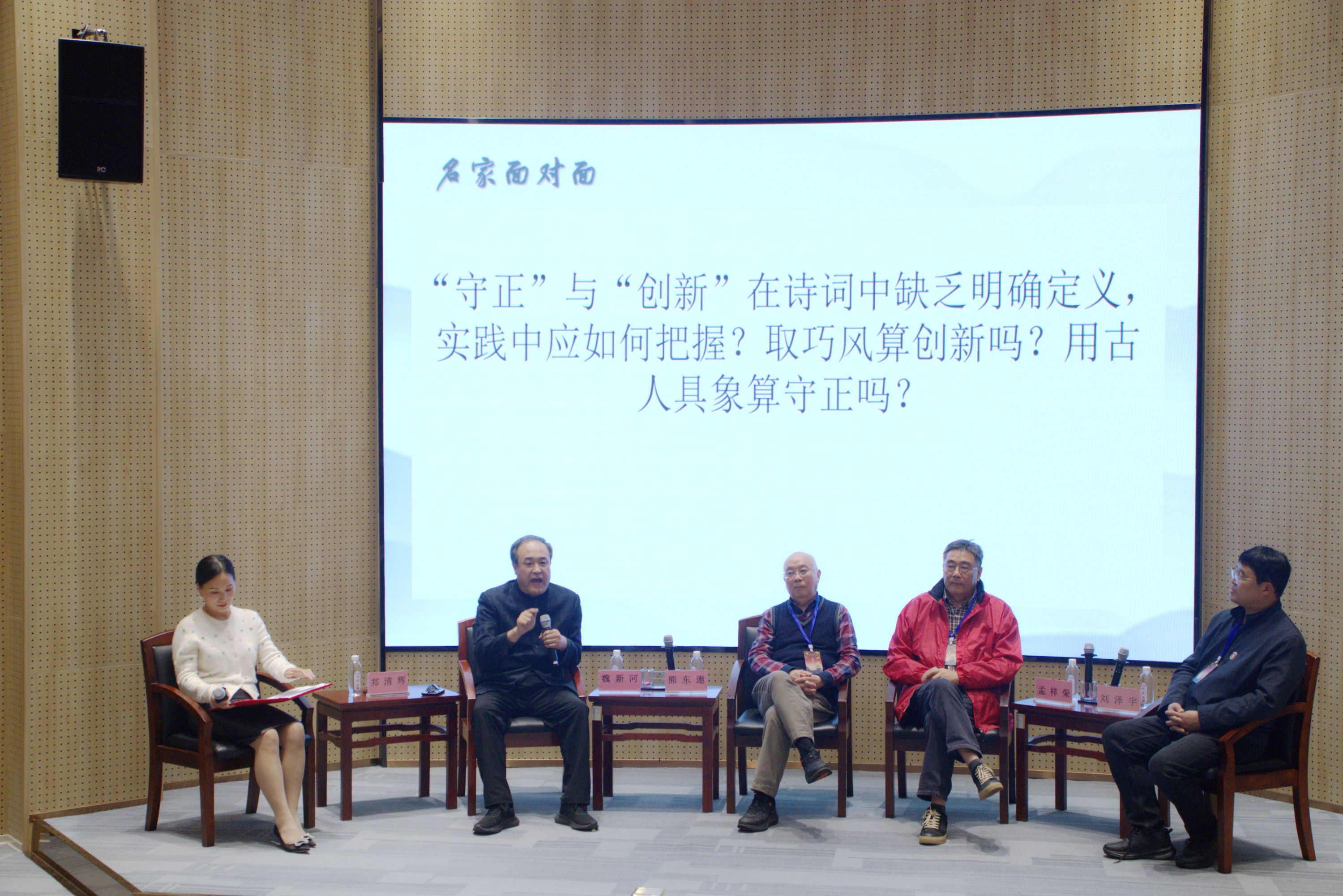 魏新河,湖南省文史馆馆员熊东遨,《当代七律三百首》主编孟祥荣,中国诗词大会第二季首场冠军刘泽宇进行共话。面对信息过载时代“写不出”与“为何写”的创作困境,既需要“沉潜洞察”的创作态度,也需要对诗词“精神锚定”价值的自觉坚守,二者共同构成了当代诗词创作者突破困境,实现创新的根本路径。